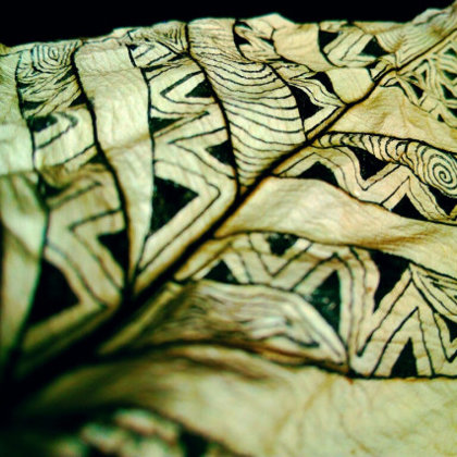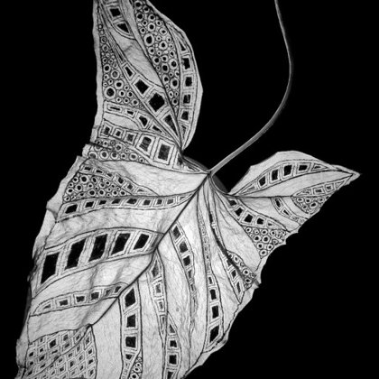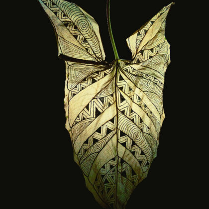 La deuxième vie des feuilles est éphémère et périssable avec une durée de vie limitée en fonction du type de feuille. L’intégration du vivant entraîne la dégradation irréversible de l’élément naturel qui paraît comme un élément à caractère fragile. Cette fragilité se perd avec l’encre et ainsi commence leur deuxième vie, mise en relief avec des jeux de lumière. C’est son caractère provisoire qui est, en quelque sorte, l’essence ultime de leur pérennité.